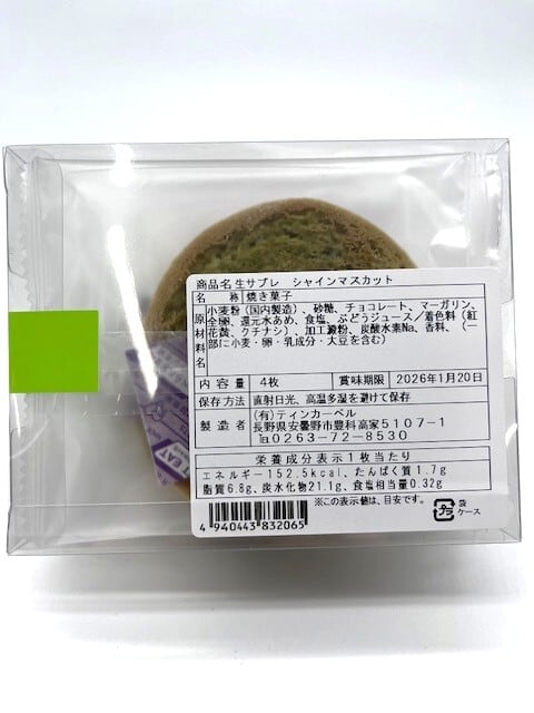 シャインマスカット 生サブレ(4枚) ホワイトチョコレート入り