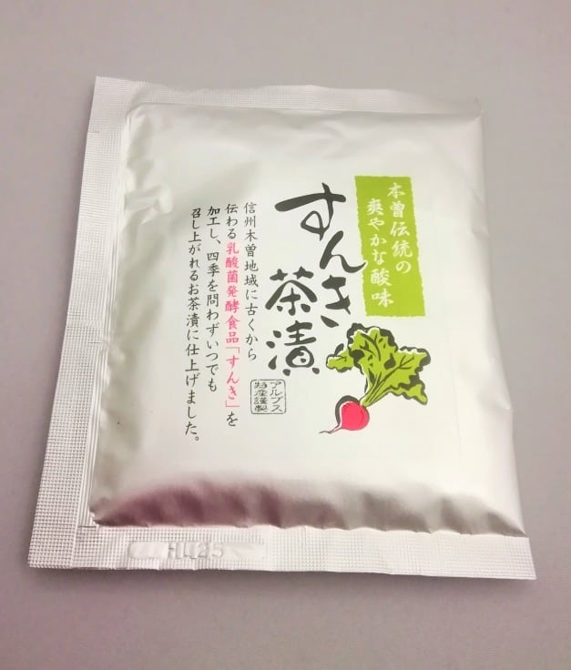 木曽地方に古くから伝わる乳酸菌発酵食品「すんき」を加工し、四季を問わずいつでも召し上がれるお茶漬けに仕上げました。