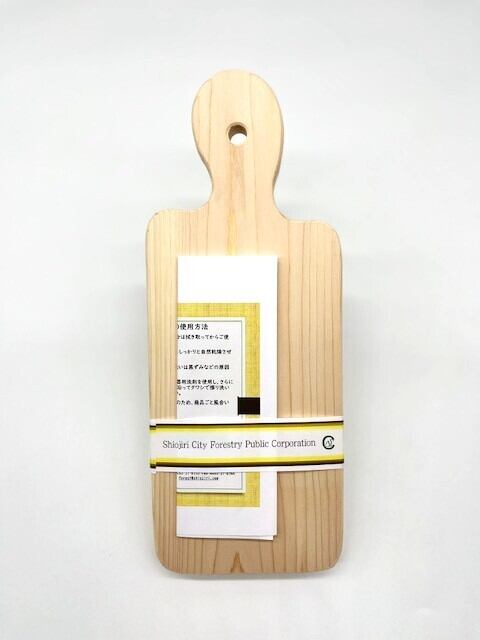 塩尻産ヒノキを活用した木製カッティングボードは、塩尻市内の木工職人さんが丹精込めて一つ一つ制作したものです。塩尻産ヒノキのスッキリとした爽やかな香りを堪能しながら、料理やお食事をお楽しみください。料理や果物、ケーキといったスウィーツものせてお楽しみいただくことができます。