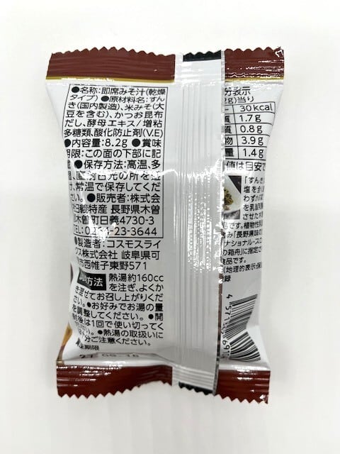 【原材料】すんき(国内製造)、米みそ(大豆を含む)、かつお昆布だし、酵母エキス/増粘多糖類、酸化防止剤、(V.E)